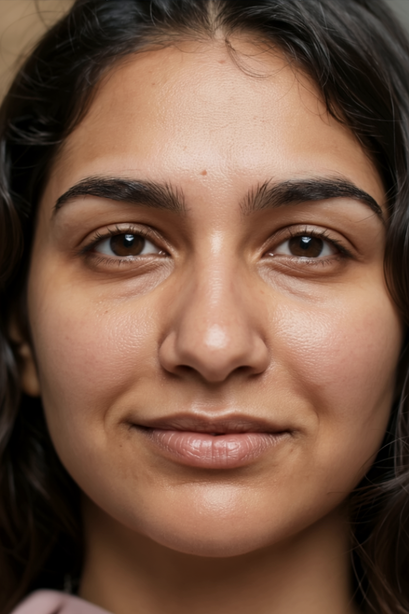 A broad-spectrum mineral SPF is applied to defend against UV-induced pigmentation and damage.
