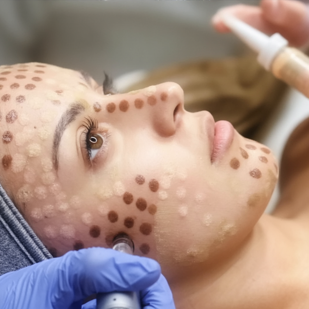 Thoroughly cleanse the face and apply numbing cream for comfort.