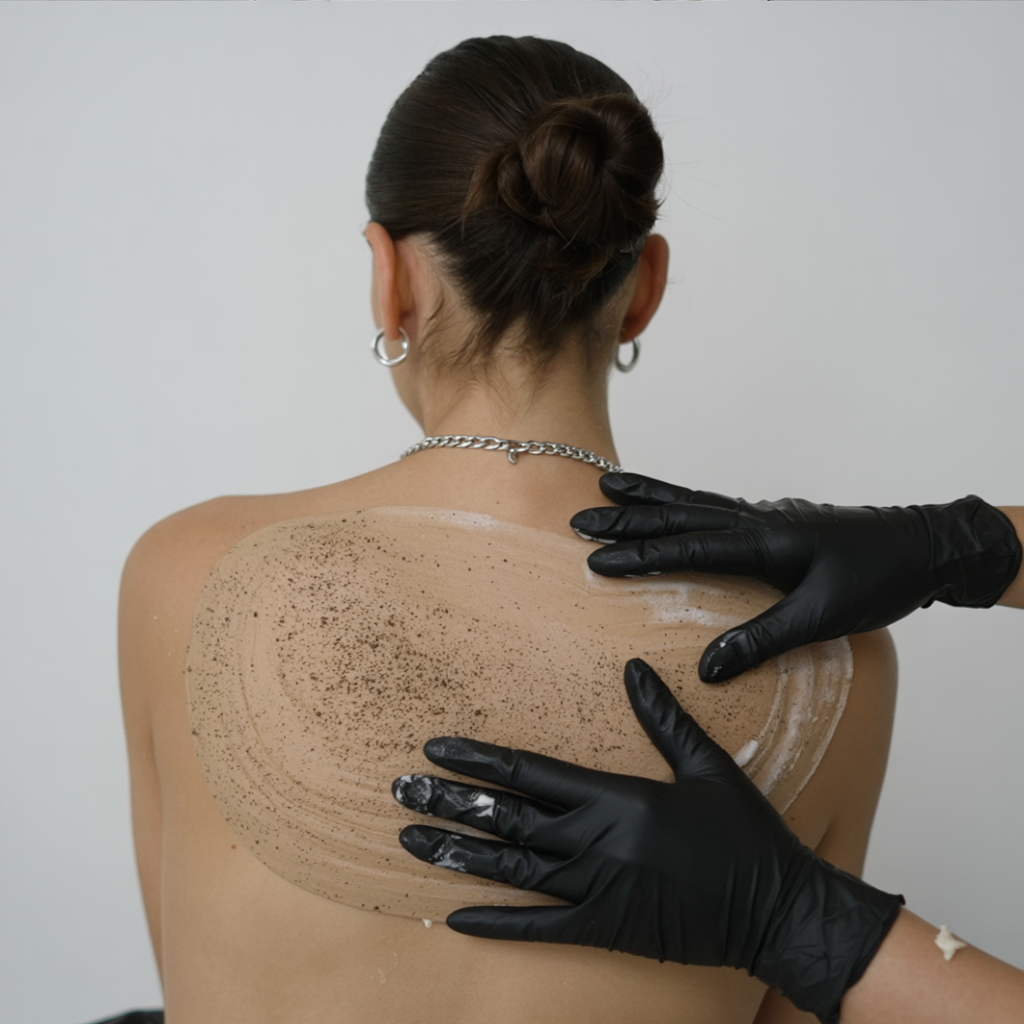 The body is gently cleansed twice to remove impurities, sweat, and surface residue. This prepares the skin for effective exfoliation and enhances product absorptio.