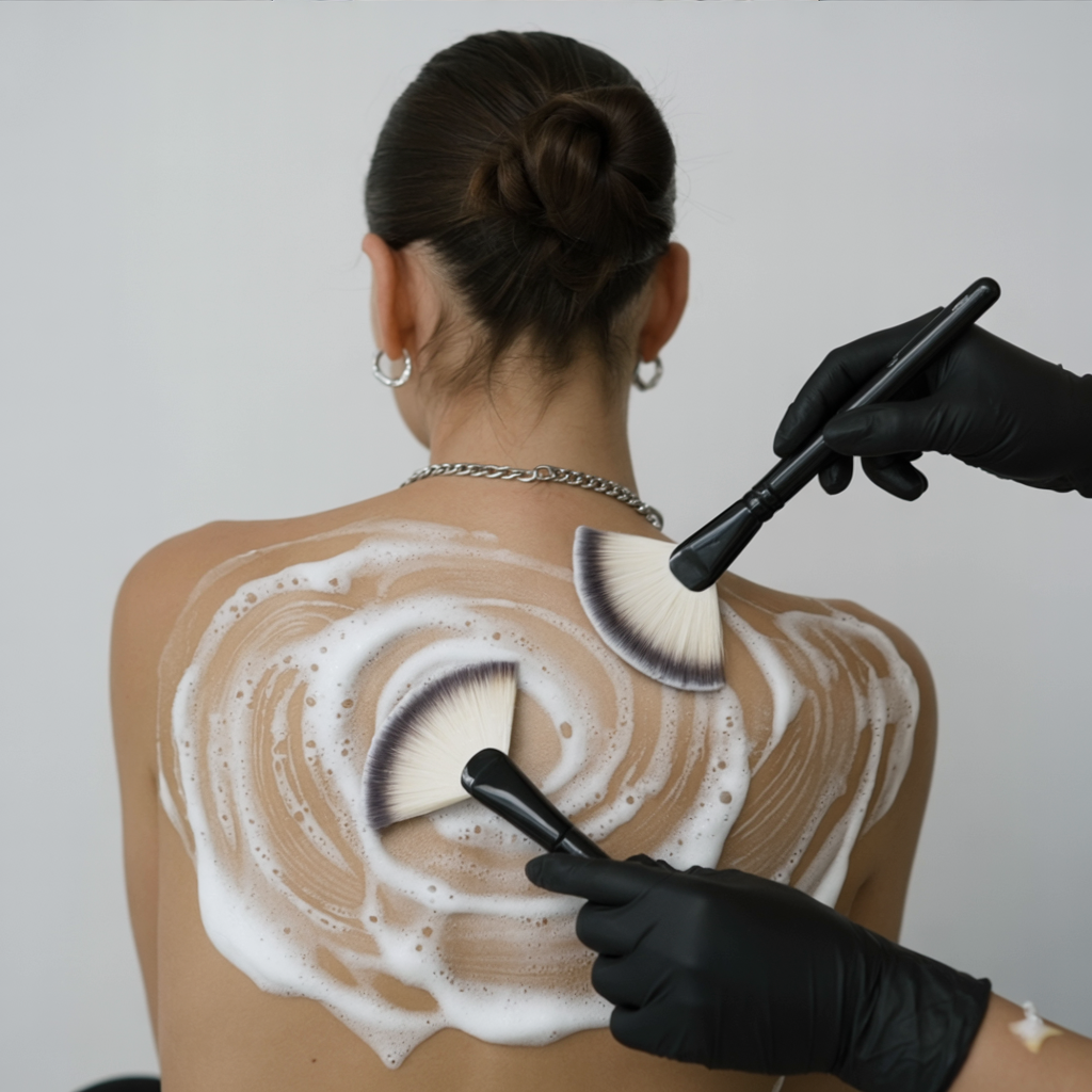 The body is gently cleansed twice to remove impurities, sweat, and surface residue. This prepares the skin for effective exfoliation and enhances product absorptio.